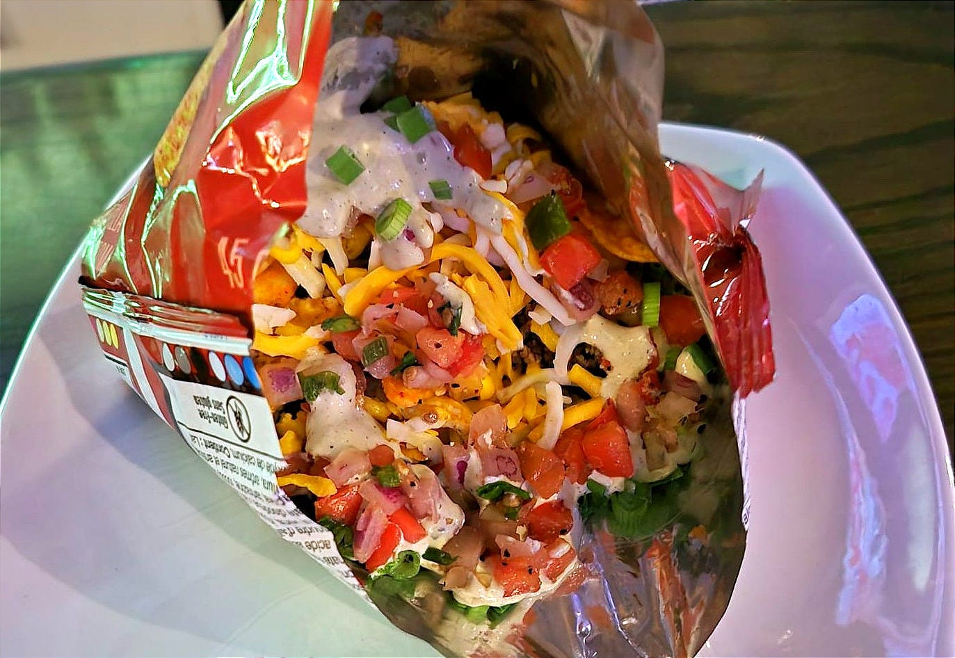 and this glorious sports-pub fare: taco-in-a-bag.